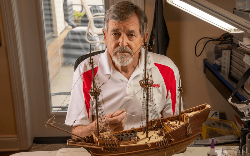 Today, Davis enjoys retirement with his wife, Linda, whom he lovingly calls “the most wonderful woman on Earth.” The couple has lived at Azalea Trace for five years, and Davis has found purpose and peace in building wooden model ships in the community’s expansive hobby shop.